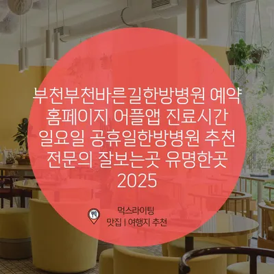 부천부천바른길한방병원 예약 홈페이지 어플앱 진료시간 일요일 공휴일한방병원 추천 전연락 잘보는곳 유명한곳 2025 에 대해 자주 묻는 질문 TOP 5