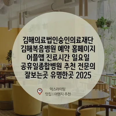 김해의료법인숭인의료재단 김해복음병원 예약 홈페이지 어플앱 진료시간 일요일 공휴일종합병원 추천 전연락 잘보는곳 유명한곳 2025 에 대해 자주 묻는 질문 TOP 5