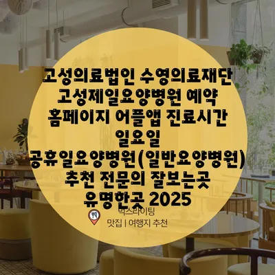 고성의료법인 수영의료재단 고성제일요양병원 예약 홈페이지 어플앱 진료시간 일요일 공휴일요양병원(일반요양병원) 추천 전문의 잘보는곳 유명한곳 2025