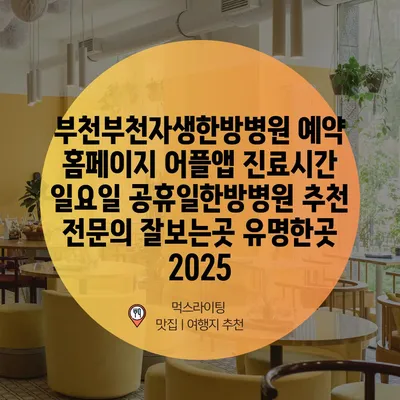 ✅ 부천부천자생한방병원의 진료시간과 예약 방법을 알아보세요.
