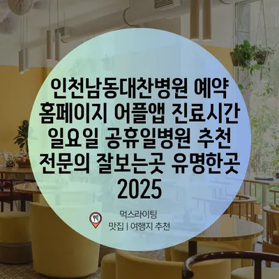 인천남동대찬병원 예약 홈페이지 어플앱 진료시간 일요일 공휴일병원 추천 전연락 잘보는곳 유명한곳 2025 에 대해 자주 묻는 질문 TOP 5