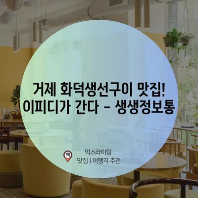 생생정보통 거제 화덕생선구이 이피디가간다에 대한 종합 가이드입니다. 거제에서 최고의 화덕 생선구이를 맛보는 방법과 팁을 확인해보세요.