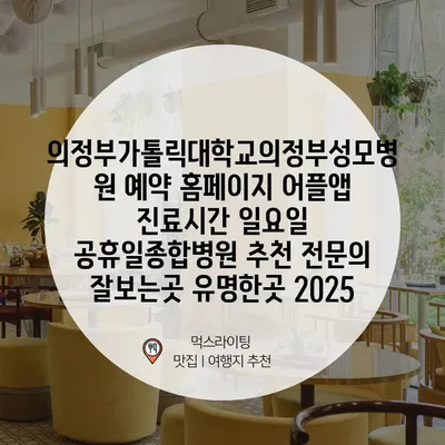 의정부추병원 예약 홈페이지 어플앱 진료시간 일요일 공휴일종합병원 추천 전문의 잘보는곳 유명한곳 2025
