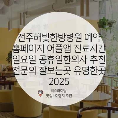 전주해빛한방병원 예약 홈페이지 어플앱 진료시간 일요일 공휴일한의사 추천 전문의 잘보는곳 유명한곳 2025