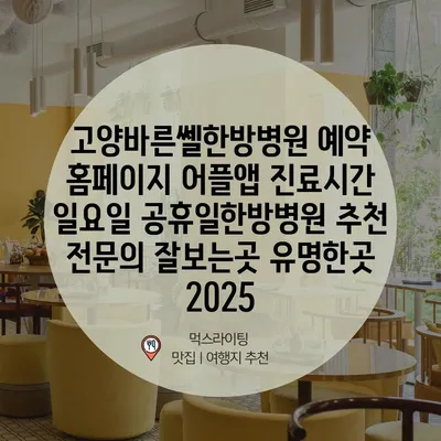 고양바른쎌한방병원 예약 홈페이지 어플앱 진료시간 일요일 공휴일한방병원 추천 전문의 잘보는곳 유명한곳 2025