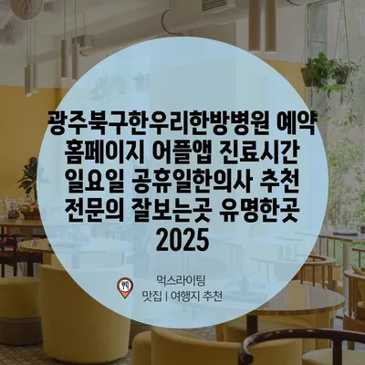 광주북구한우리한방병원 예약 홈페이지 어플앱 진료시간 일요일 공휴일한의사 추천 전문의 잘보는곳 유명한곳 2025