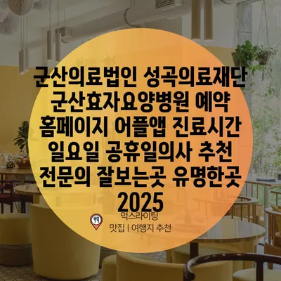 군산의료법인 성곡의료재단 군산효자요양병원 예약 홈페이지 어플앱 진료시간 일요일 공휴일의사 추천 전문의 잘보는곳 유명한곳 2025