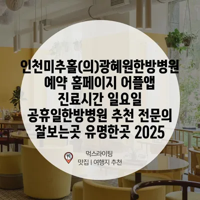 인천미추홀(의)광혜원한방병원 예약 홈페이지 어플앱 진료시간 일요일 공휴일한방병원 추천 전문의 잘보는곳 유명한곳 2025