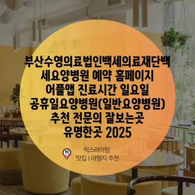 부산수영의료법인백세의료재단백세요양병원 예약 홈페이지 어플앱 진료시간 일요일 공휴일요양병원(일반요양병원) 추천 전문의 잘보는곳 유명한곳 2025