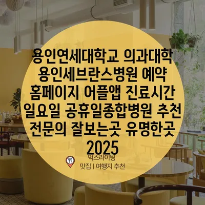 용인연세대학교 의과대학 용인세브란스병원 예약 홈페이지 어플앱 진료시간 일요일 공휴일종합병원 추천 전문의 잘보는곳 유명한곳 2025