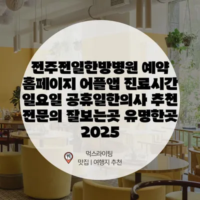 전주전일한방병원 예약 홈페이지 어플앱 진료시간 일요일 공휴일한의사 추천 전문의 잘보는곳 유명한곳 2025