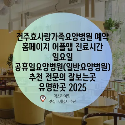 전주효사랑가족요양병원 예약 홈페이지 어플앱 진료시간 일요일 공휴일요양병원(일반요양병원) 추천 전문의 잘보는곳 유명한곳 2025