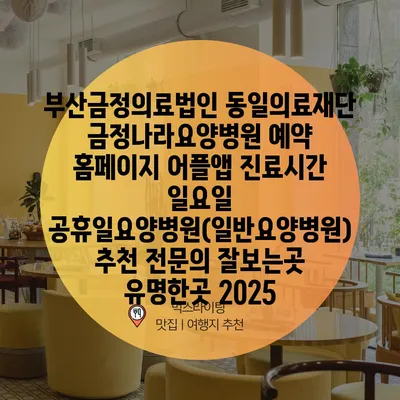 부산금정의료법인 동일의료재단 금정나라요양병원 예약 홈페이지 어플앱 진료시간 일요일 공휴일요양병원(일반요양병원) 추천 전문의 잘보는곳 유명한곳 2025