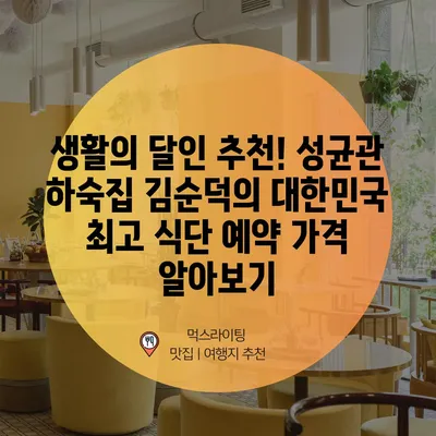 생활의 달인 추천! 성균관 하숙집 김순덕의 대한민국 최고 식단 예약 가격 알아보기