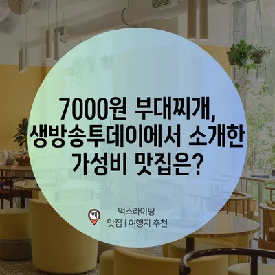 7000원 부대찌개, 생방송투데이에서 소개한 가성비 맛집은?