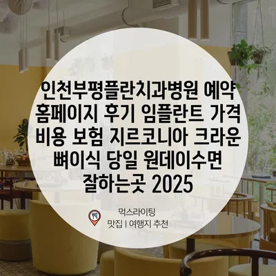 인천부평플란치과병원 예약 홈페이지 후기 임플란트 가격 비용 보험 지르코니아 크라운 뼈이식 당일 원데이수면 잘하는곳 2025