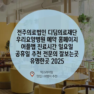 전주의료법인 디딤의료재단 우리요양병원 예약 홈페이지 어플앱 진료시간 일요일 공휴일 추천 전문의 잘보는곳 유명한곳 2025