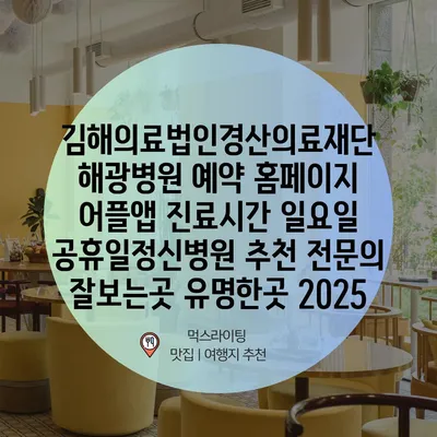 김해의료법인경산의료재단 해광병원 예약 홈페이지 어플앱 진료시간 일요일 공휴일정신병원 추천 전문의 잘보는곳 유명한곳 2025