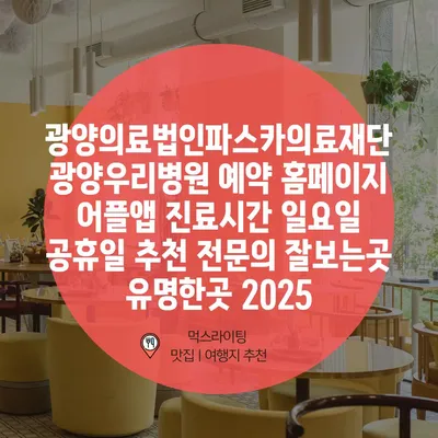 광양의료법인파스카의료재단 광양우리병원 예약 홈페이지 어플앱 진료시간 일요일 공휴일 추천 전문의 잘보는곳 유명한곳 2025