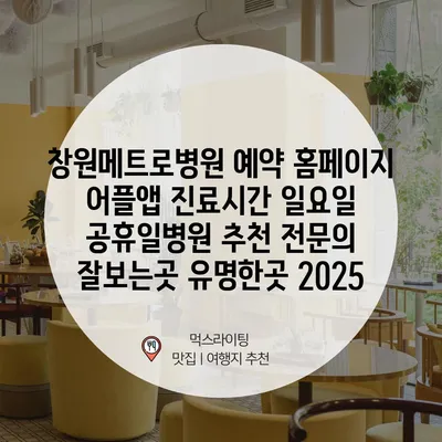창원메트로병원 예약 홈페이지 어플앱 진료시간 일요일 공휴일병원 추천 전문의 잘보는곳 유명한곳 2025