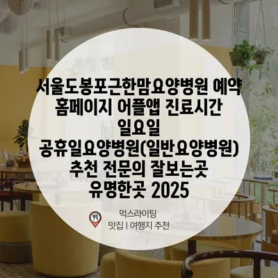 서울도봉포근한맘요양병원 예약 홈페이지 어플앱 진료시간 일요일 공휴일요양병원(일반요양병원) 추천 전문의 잘보는곳 유명한곳 2025