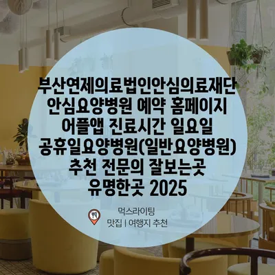 부산연제의료법인안심의료재단 안심요양병원 예약 홈페이지 어플앱 진료시간 일요일 공휴일요양병원(일반요양병원) 추천 전문의 잘보는곳 유명한곳 2025