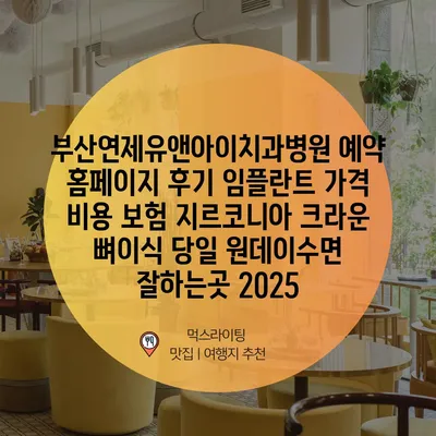 부산연제유앤아이치과병원 예약 홈페이지 후기 임플란트 가격 비용 보험 지르코니아 크라운 뼈이식 당일 원데이수면 잘하는곳 2025
