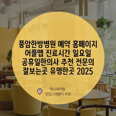 풍암한방병원 예약 홈페이지 어플앱 진료시간 일요일 공휴일한의사 추천 전문의 잘보는곳 유명한곳 2025