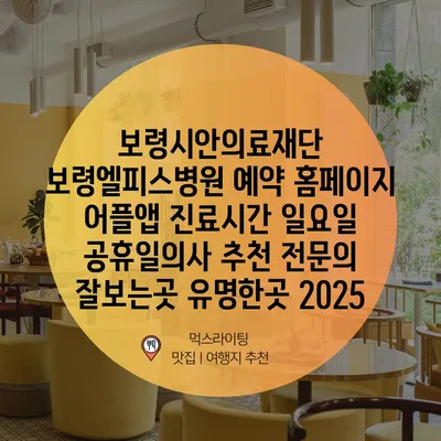 보령시안의료재단 보령엘피스병원 예약 홈페이지 어플앱 진료시간 일요일 공휴일의사 추천 전문의 잘보는곳 유명한곳 2025