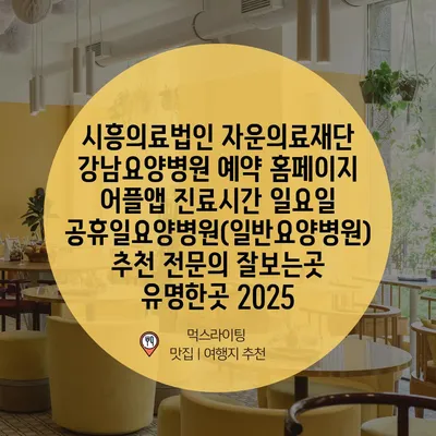 시흥의료법인 자운의료재단 강남요양병원 예약 홈페이지 어플앱 진료시간 일요일 공휴일요양병원(일반요양병원) 추천 전문의 잘보는곳 유명한곳 2025