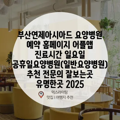 부산연제아시아드 요양병원 예약 홈페이지 어플앱 진료시간 일요일 공휴일요양병원(일반요양병원) 추천 전문의 잘보는곳 유명한곳 2025