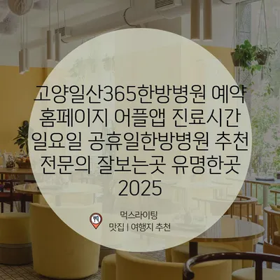 고양일산365한방병원 예약 홈페이지 어플앱 진료시간 일요일 공휴일한방병원 추천 전문의 잘보는곳 유명한곳 2025