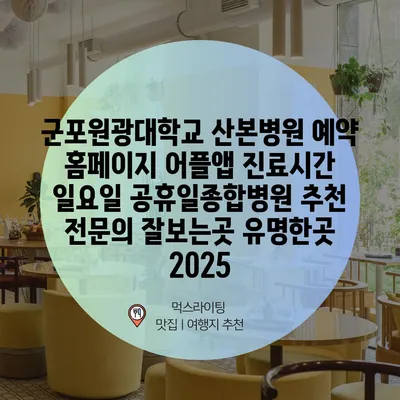 군포원광대학교 산본병원 예약 홈페이지 어플앱 진료시간 일요일 공휴일종합병원 추천 전문의 잘보는곳 유명한곳 2025