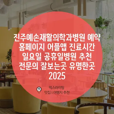 진주예손재활의학과병원 예약 홈페이지 어플앱 진료시간 일요일 공휴일병원 추천 전문의 잘보는곳 유명한곳 2025