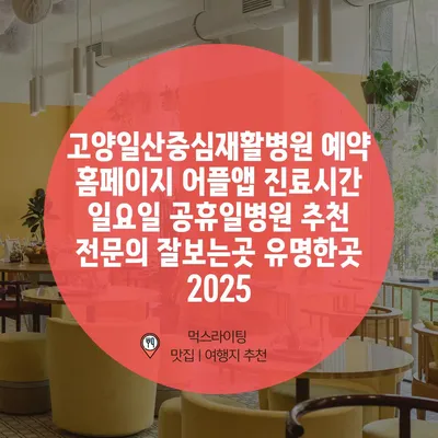 고양일산중심재활병원 예약 홈페이지 어플앱 진료시간 일요일 공휴일병원 추천 전문의 잘보는곳 유명한곳 2025