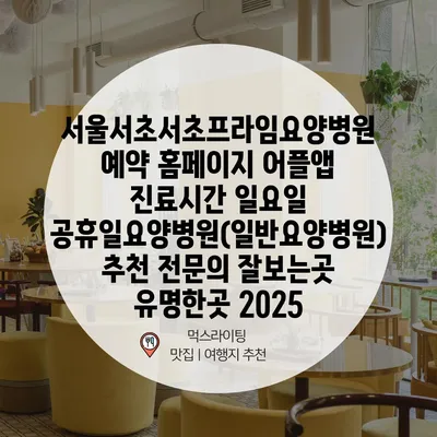 서울서초서초프라임요양병원 예약 홈페이지 어플앱 진료시간 일요일 공휴일요양병원(일반요양병원) 추천 전문의 잘보는곳 유명한곳 2025