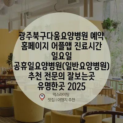 광주북구다움요양병원 예약 홈페이지 어플앱 진료시간 일요일 공휴일요양병원(일반요양병원) 추천 전문의 잘보는곳 유명한곳 2025