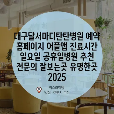 대구달서마디탄탄병원 예약 홈페이지 어플앱 진료시간 일요일 공휴일병원 추천 전문의 잘보는곳 유명한곳 2025
