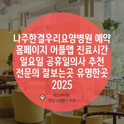 나주한결우리요양병원 예약 홈페이지 어플앱 진료시간 일요일 공휴일의사 추천 전문의 잘보는곳 유명한곳 2025