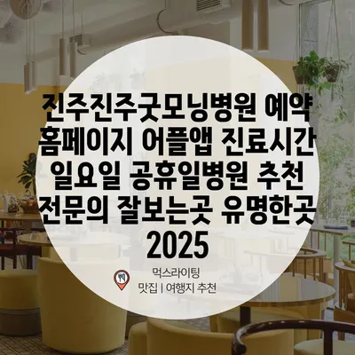 진주진주굿모닝병원 예약 홈페이지 어플앱 진료시간 일요일 공휴일병원 추천 전문의 잘보는곳 유명한곳 2025