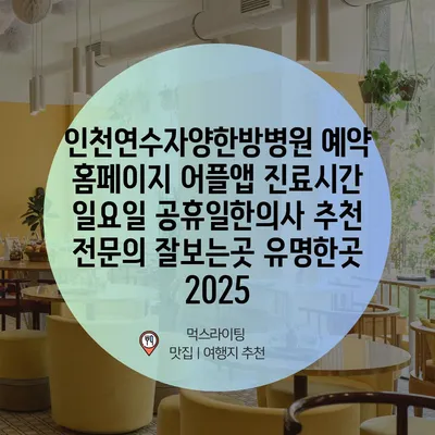 인천연수자양한방병원 예약 홈페이지 어플앱 진료시간 일요일 공휴일한의사 추천 전문의 잘보는곳 유명한곳 2025