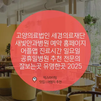 고양의료법인 세경의료재단 새빛안과병원 예약 홈페이지 어플앱 진료시간 일요일 공휴일병원 추천 전문의 잘보는곳 유명한곳 2025