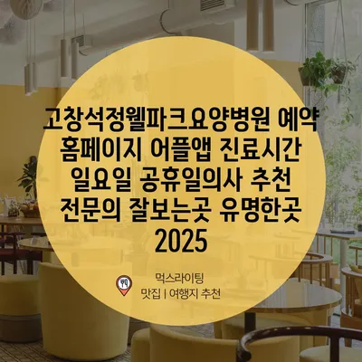 고창석정웰파크요양병원 예약 홈페이지 어플앱 진료시간 일요일 공휴일의사 추천 전문의 잘보는곳 유명한곳 2025