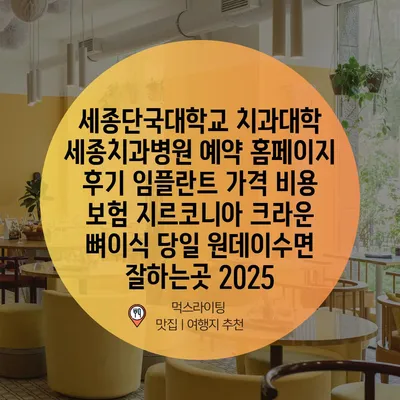 세종단국대학교 치과대학 세종치과병원 예약 홈페이지 후기 임플란트 가격 비용 보험 지르코니아 크라운 뼈이식 당일 원데이수면 잘하는곳 2025
