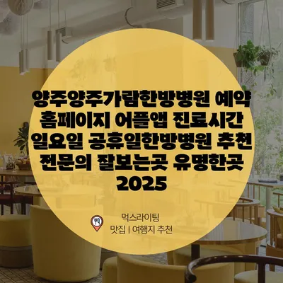 양주양주가람한방병원 예약 홈페이지 어플앱 진료시간 일요일 공휴일한방병원 추천 전문의 잘보는곳 유명한곳 2025