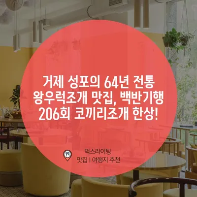 백반기행 거제 코끼리조개 한상 성포 64년 전통 3대째 왕우럭조개 맛집 가격 식당 위치 206회 홍성흔 메타 설명 백반기행 206회에서 소개한 거제시 성포의 64년 전통 코끼리조개 맛집, 왕우럭조개 한상을 경험해보세요! 가격, 위치, 추천 정보 가득! 1. 백반기행과 거제시: 해산물의 천국 백반기행 프로그램은 사람들이 다양한 음식과 경험을 공유할 수 있는 장을 제공합니다. 이번에는 거제시를 방문하며 신선한 해산물 … Read more