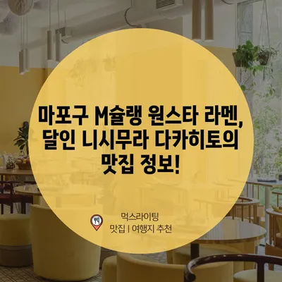 마포구 M슐랭 원스타 라멘, 달인 니시무라 다카히토의 맛집 정보!