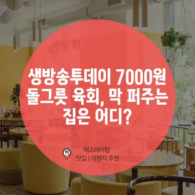 생방송투데이 7000원 돌그릇 육회 막퍼주는집 얼만데요 생방송투데이에서 소개된 7000원 돌그릇 육회 막퍼주는집 정보를 담고 있으며, 맛과 가격에 대한 상세한 내용을 정리했습니다. 생방송투데이에서 소개된 7000원 돌그릇 육회 막퍼주는집 2024년 6월 19일, SBS의 생방송투데이 프로그램은 특이한 미식을 추구하는 시청자들을 위한 흥미로운 이야기를 전했습니다. 바로, 7000원 돌그릇 육회 막퍼주는집입니다. 이 식당은 서울 마포구에 위치하고 있으며, 그 이름처럼 고객에게 … Read more