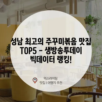 성남 최고의 주꾸미볶음 맛집 TOP5 – 생방송투데이 빅데이터 랭킹!