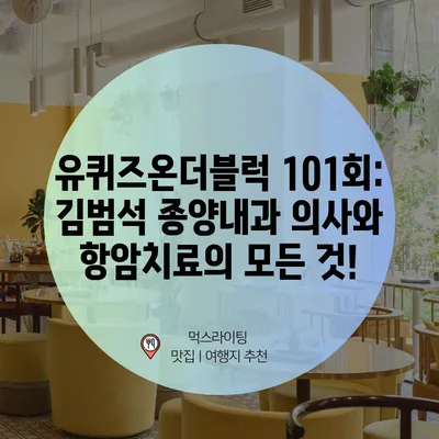 유퀴즈온더블럭 101회: 김범석 종양내과 의사와 항암치료의 모든 것!